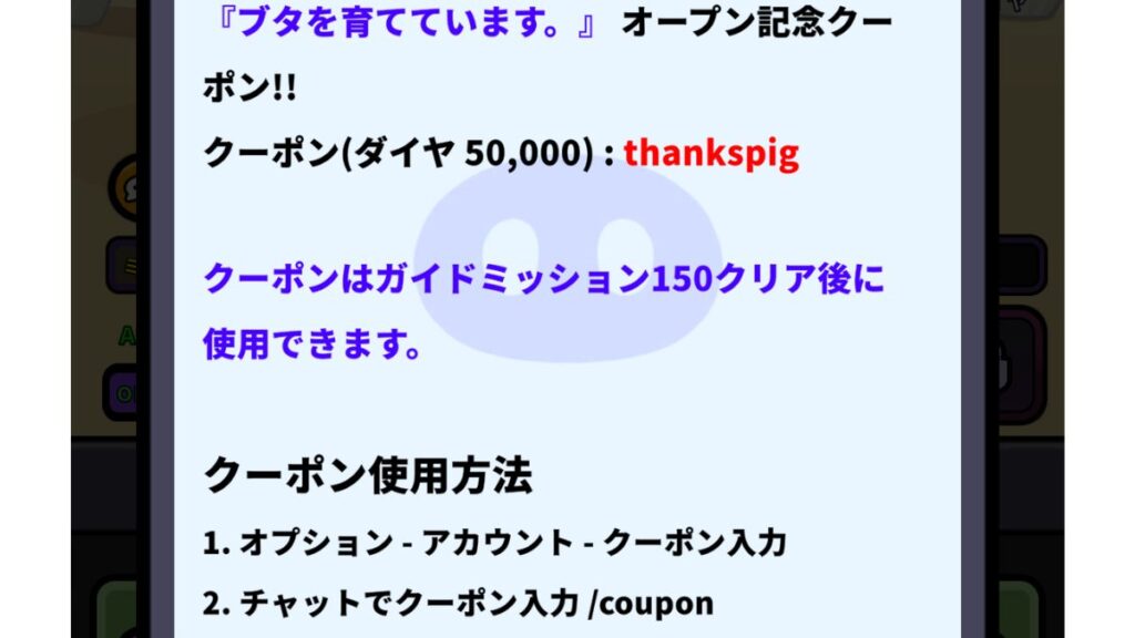 ブタを育てていますのクーポンコードは、公式Xやディスコード・ゲーム内お知らせから入手できる可能性がある為、こまめに確認しましょう。