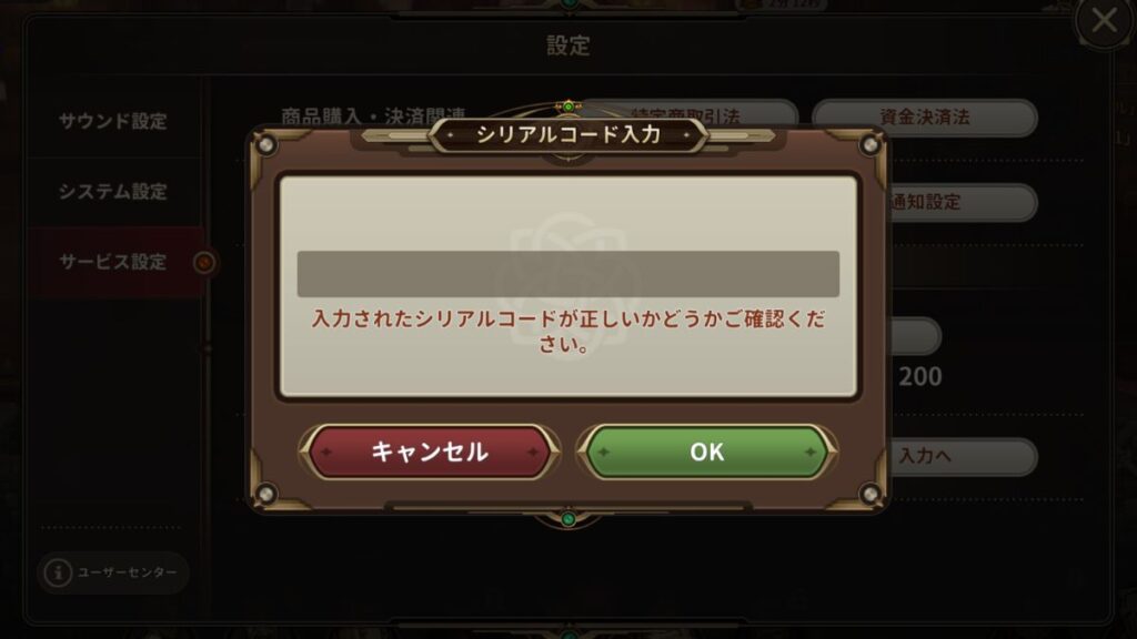 シリアルコード入力方法