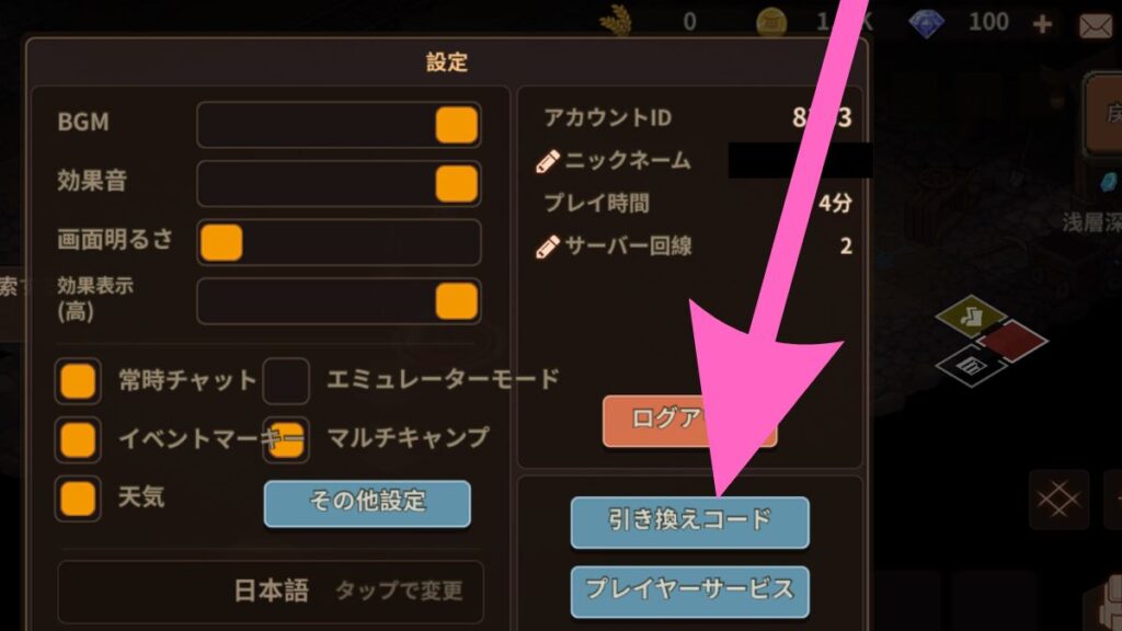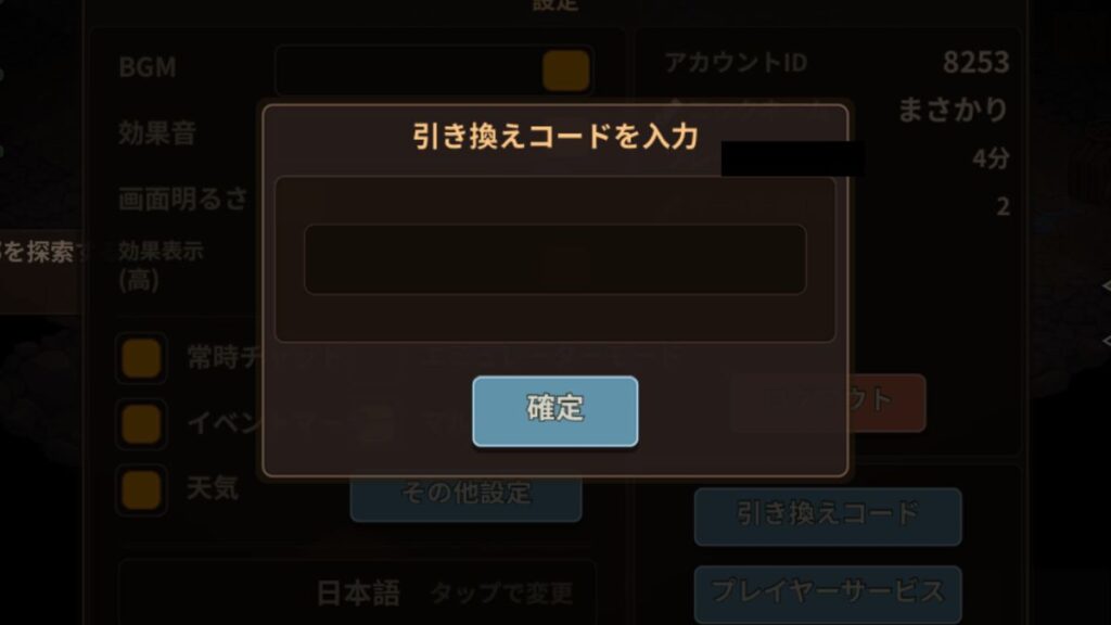 引き換えコード入力欄にコードを入力して確定をタップしましょう。