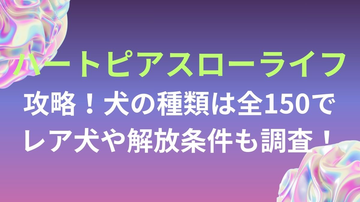 ハートピアスローライフの犬たちは、猫と同様に全150種類が用意され、柄や目のバリエーションがプレイヤーの心を掴んで離しません。