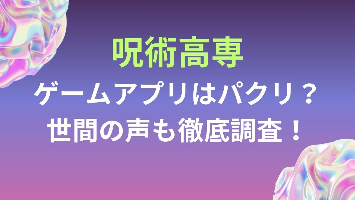 本記事では、呪術高専ゲームアプリはパクリ?世間の声も徹底調査していきます。