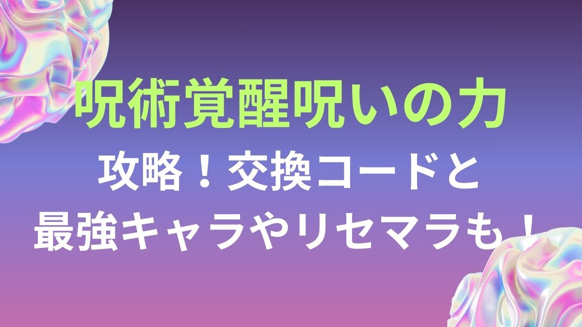本記事では、呪術覚醒呪いの力攻略!交換コードと最強キャラやリセマラも解説していきます。