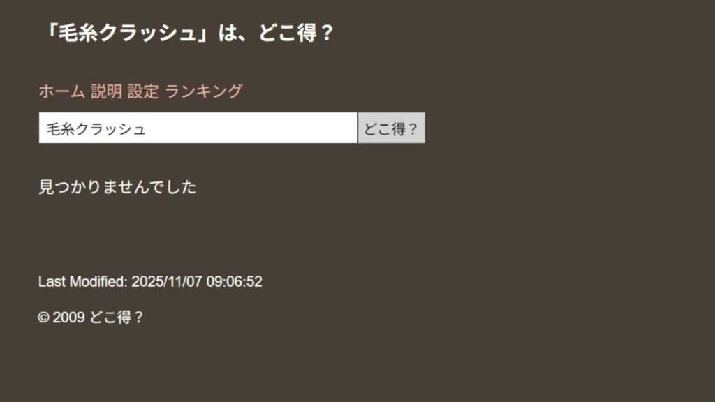 理由は、検索サイト「どこ得」で毛糸クラッシュと検索しても「ポイ活案件」は出ていないことが分かったからです。