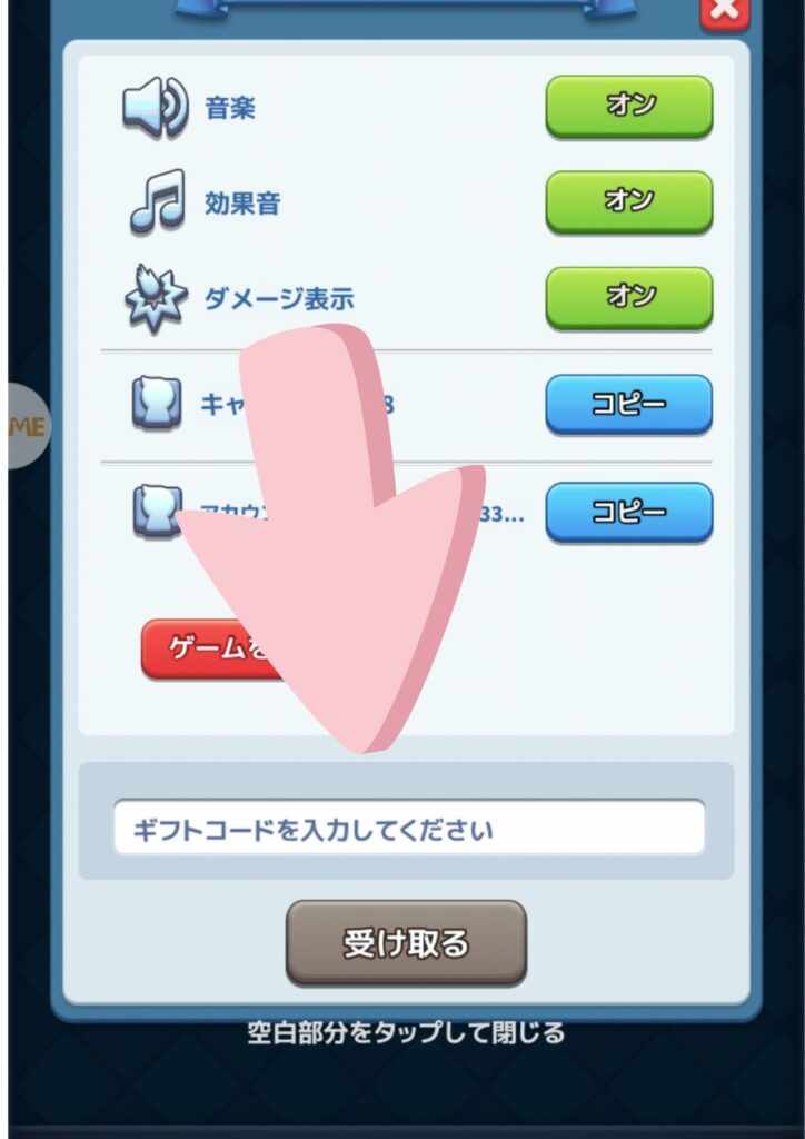 3.画面下にギフトコードを入力後受け取るで獲得。