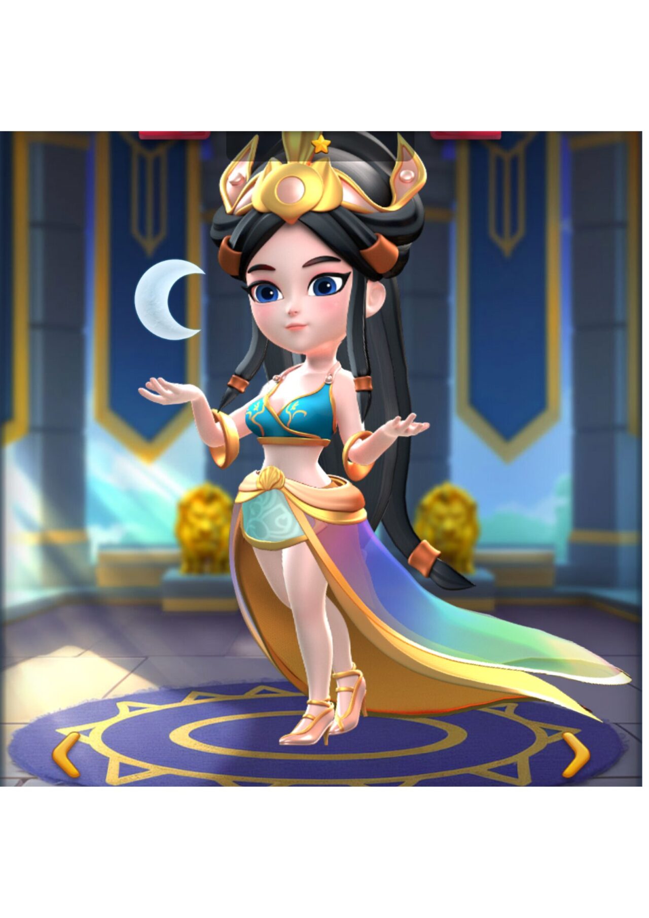 月へと変身して空に飛び上がり、嫦娥の攻撃力の20%分が他の英雄に追加される。敵全体のダメージ-5%、持続時間12秒