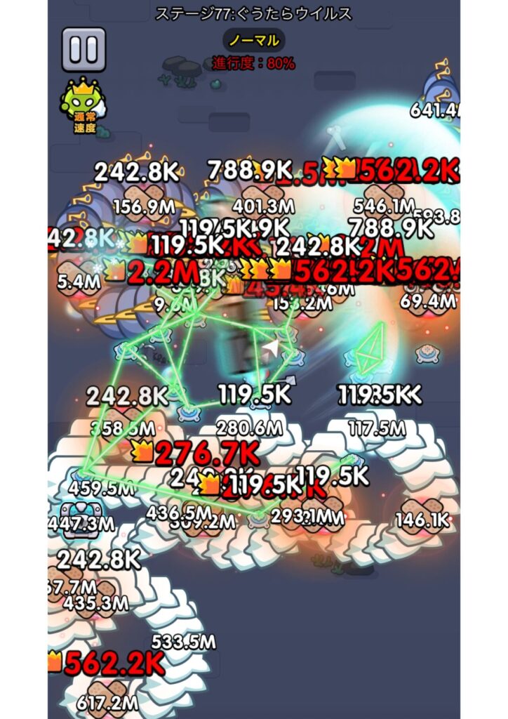 とにかく序盤から大型メスを強化して、本数とダメージ強化をすることがポイントです。