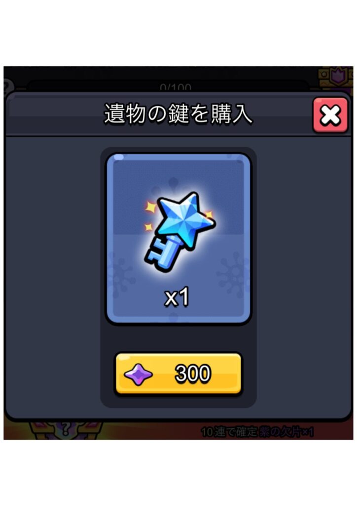 300ダイヤで1個購入は、正確には遺物宝箱ガチャを引くときに「遺物の鍵を購入」する流れになります。