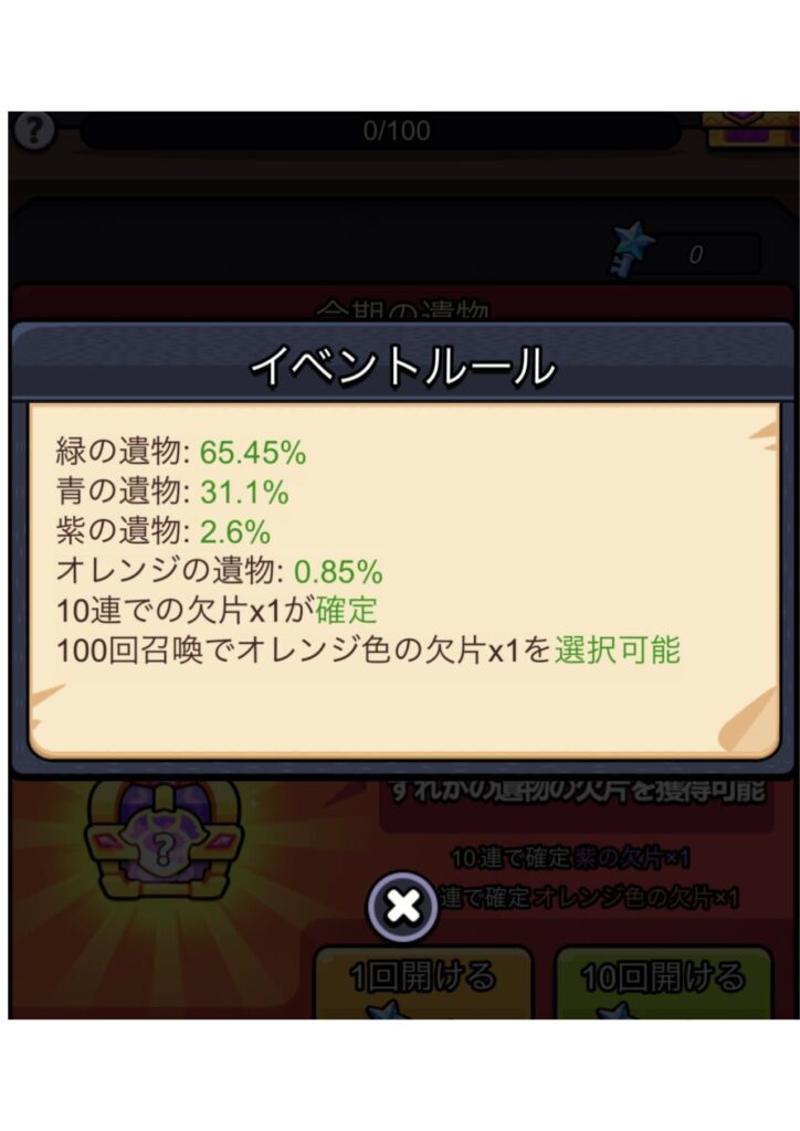 | 100回 | オレンジ色の欠片×1(選択可能) |