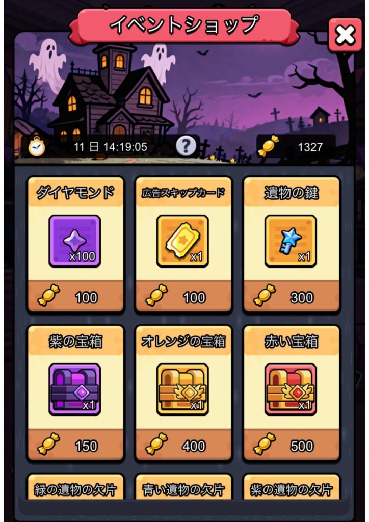 遺物の鍵はイベントショップで300キャンディーで1個交換できます。