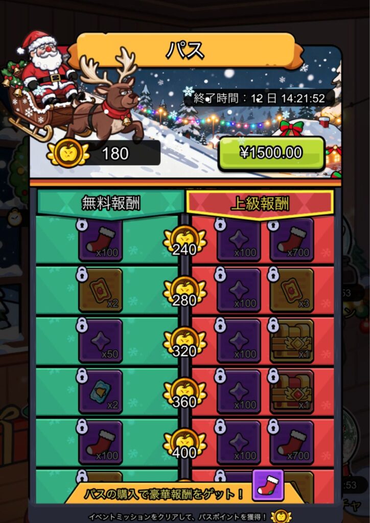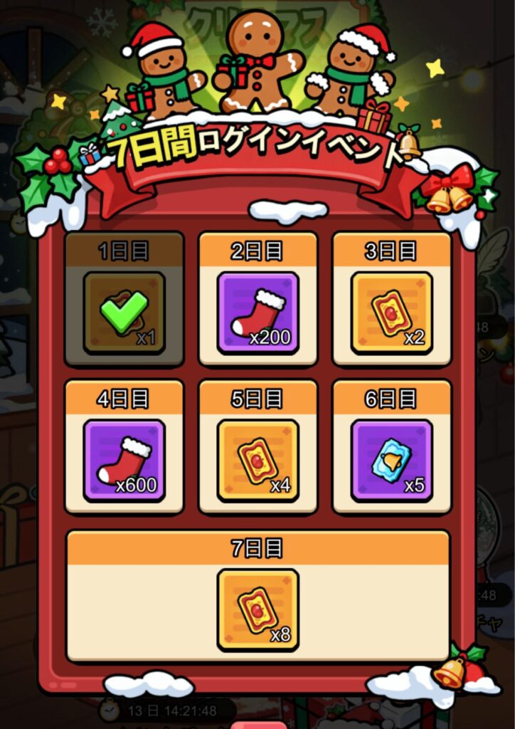 セルサバイバーのクリスマスイベントで獲得できる報酬はこちら、